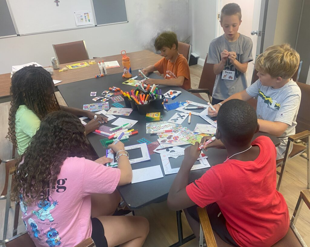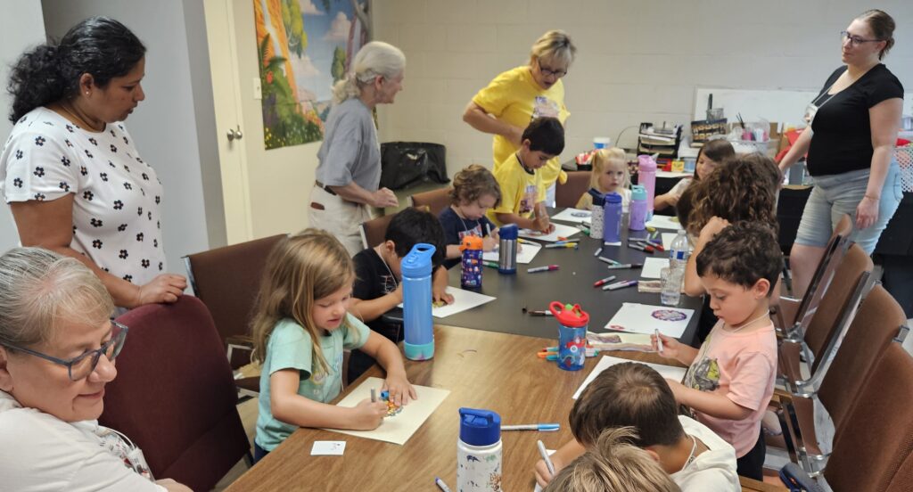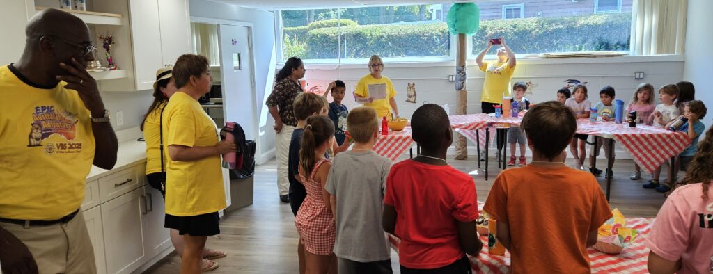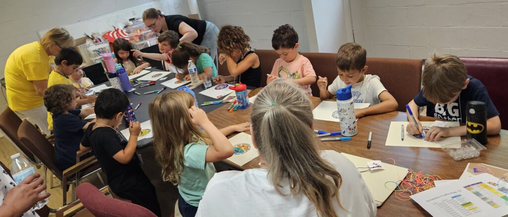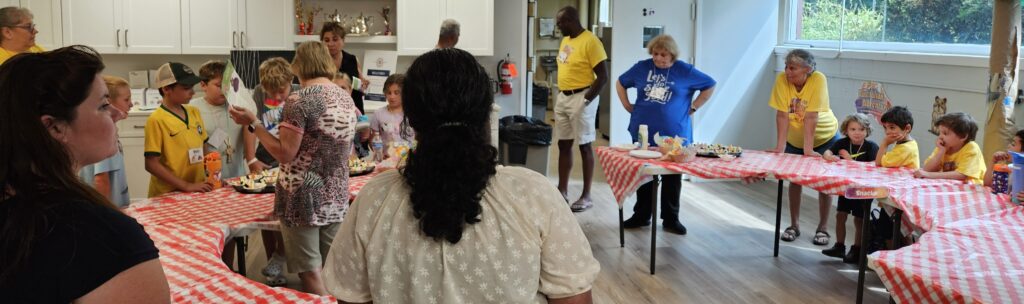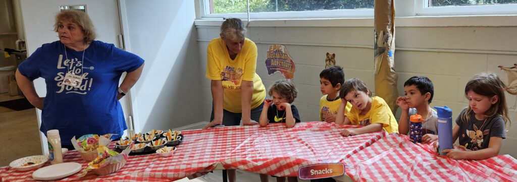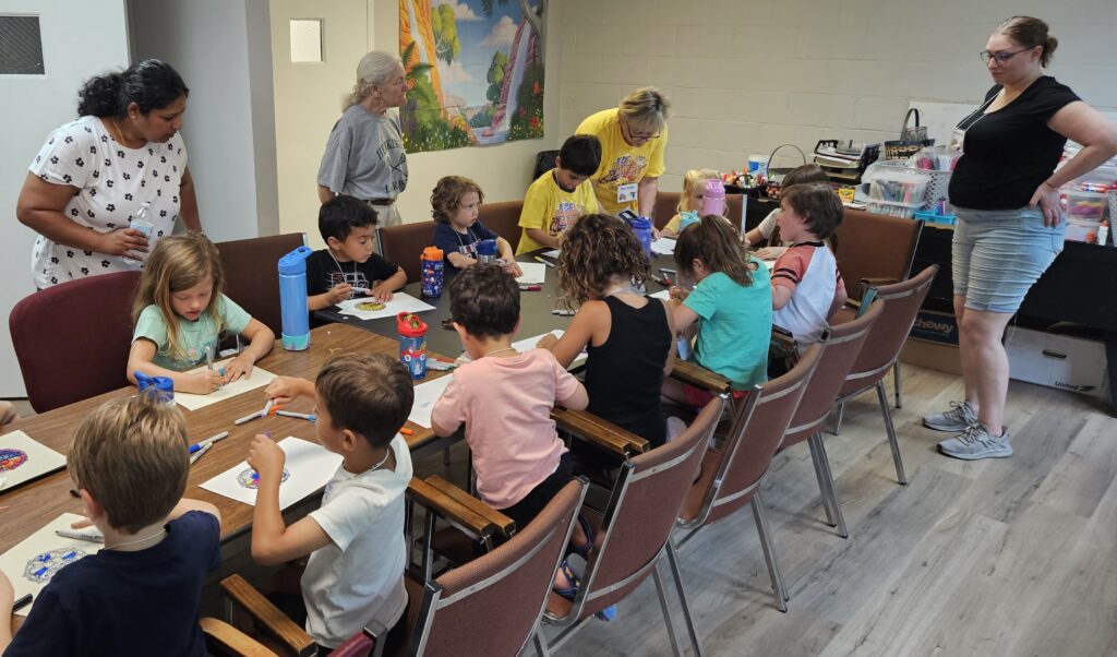 VBS took place Monday August 11 through Friday August 15 beginning at 12:00 noon each day with a light lunch and concluding at 4:00 pm.