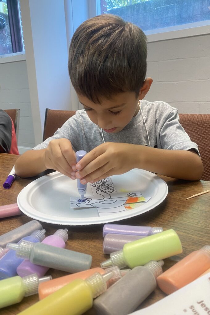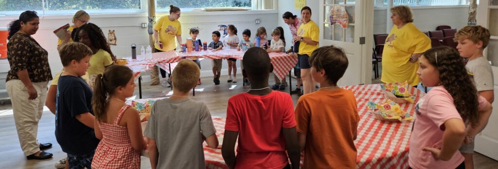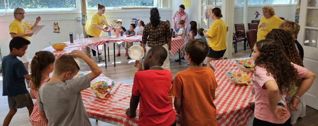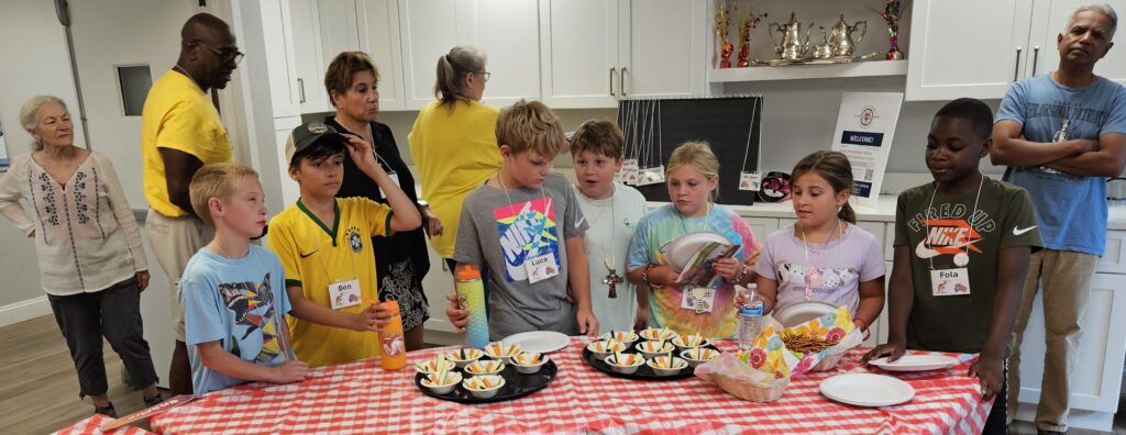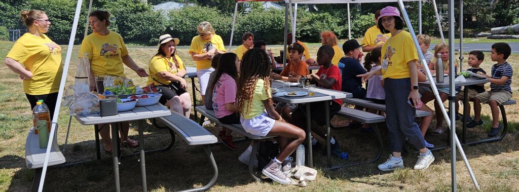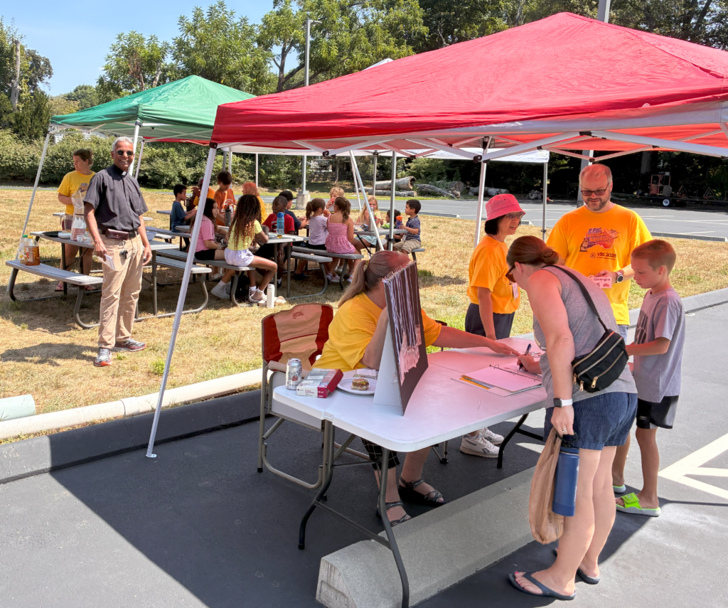 VBS took place Monday August 11 through Friday August 15 beginning at 12:00 noon each day with a light lunch and concluding at 4:00 pm.