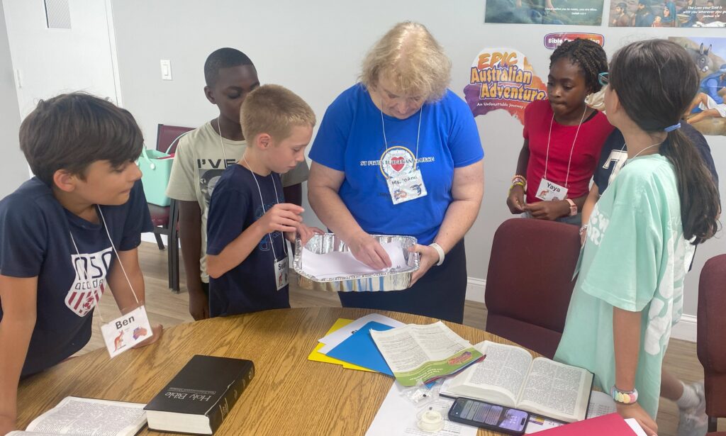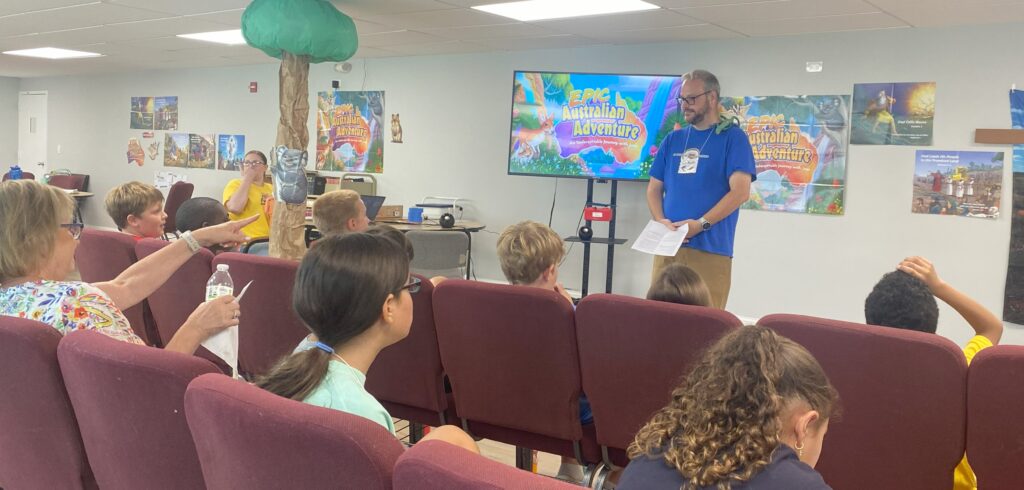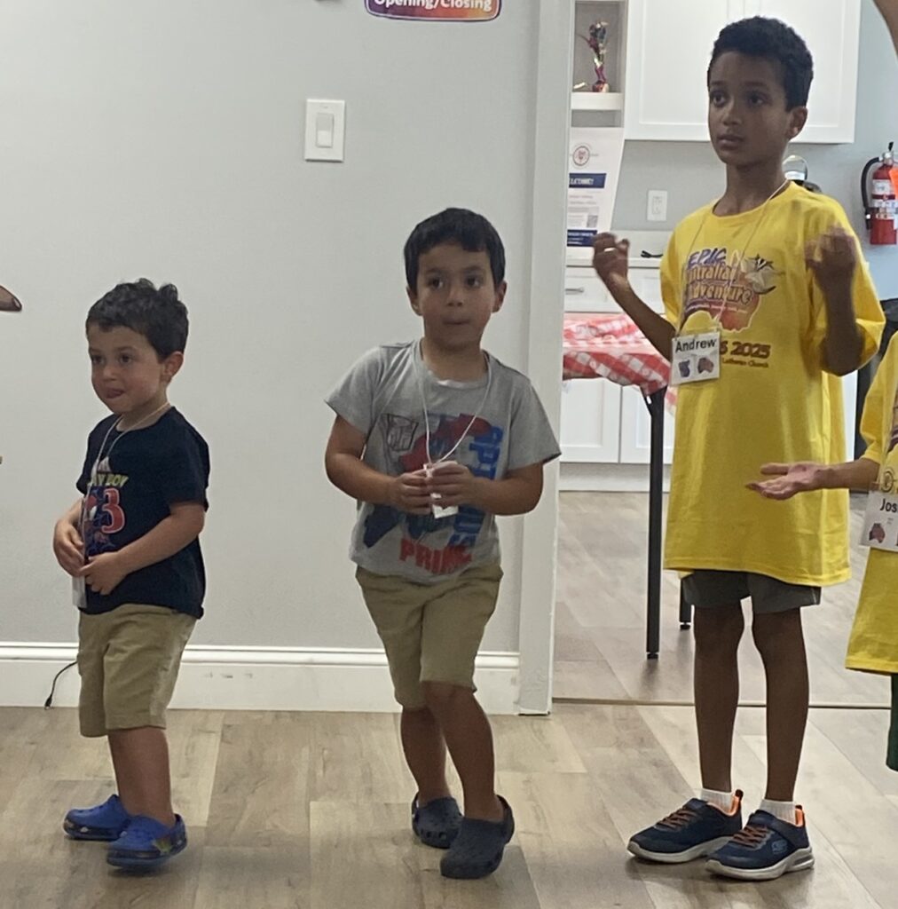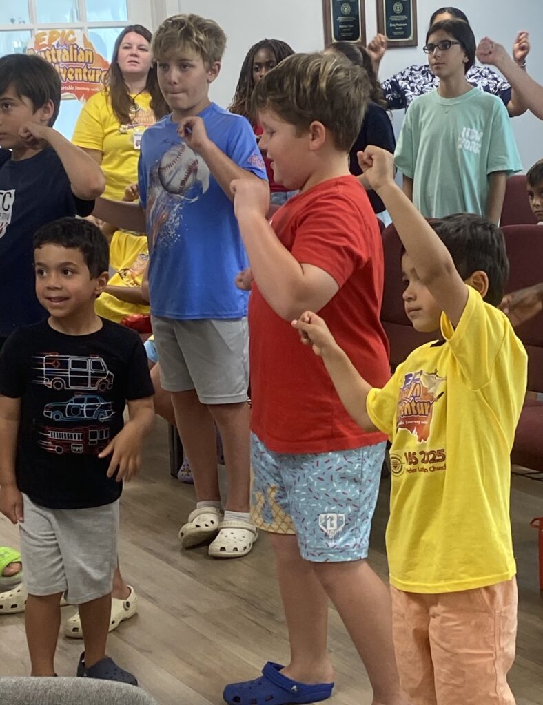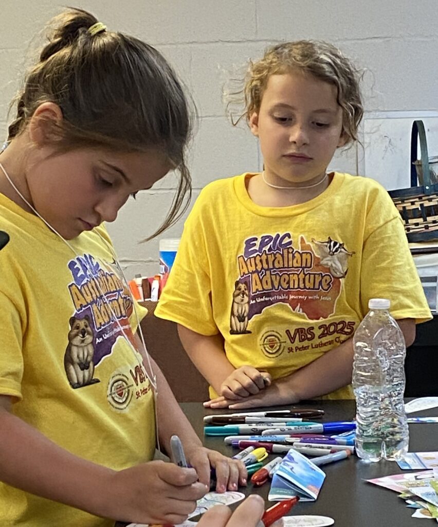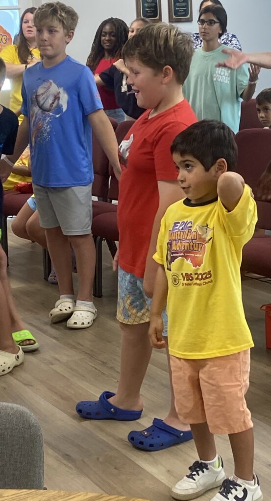 Children ages pre-K through 8th grade heard the Good News through the LCMS VBS program “Epic Australian Adventure”. The week long event included lessons, singing, games, snack, crafts, and science experiments around the theme of an unforgettable journey with Jesus.